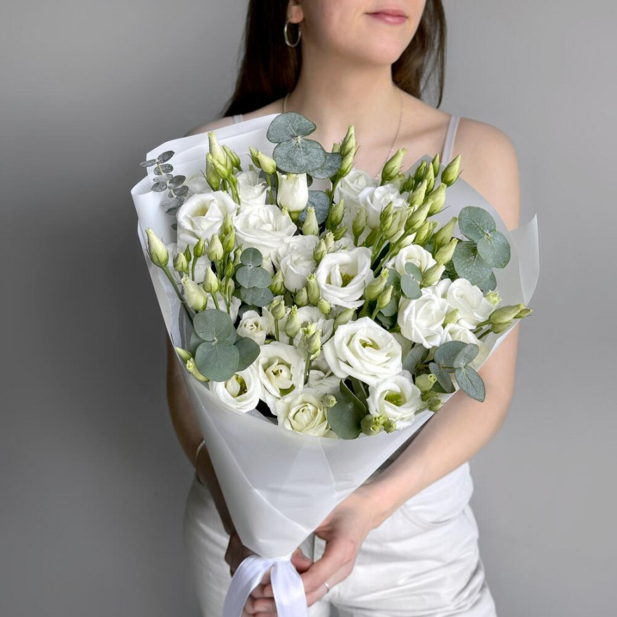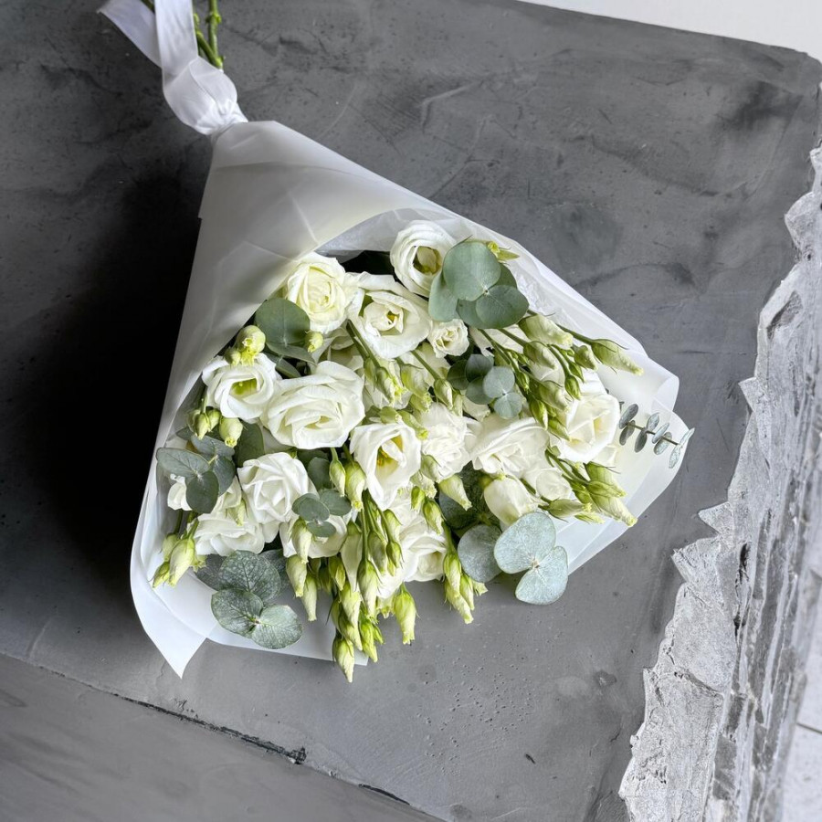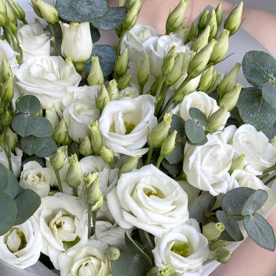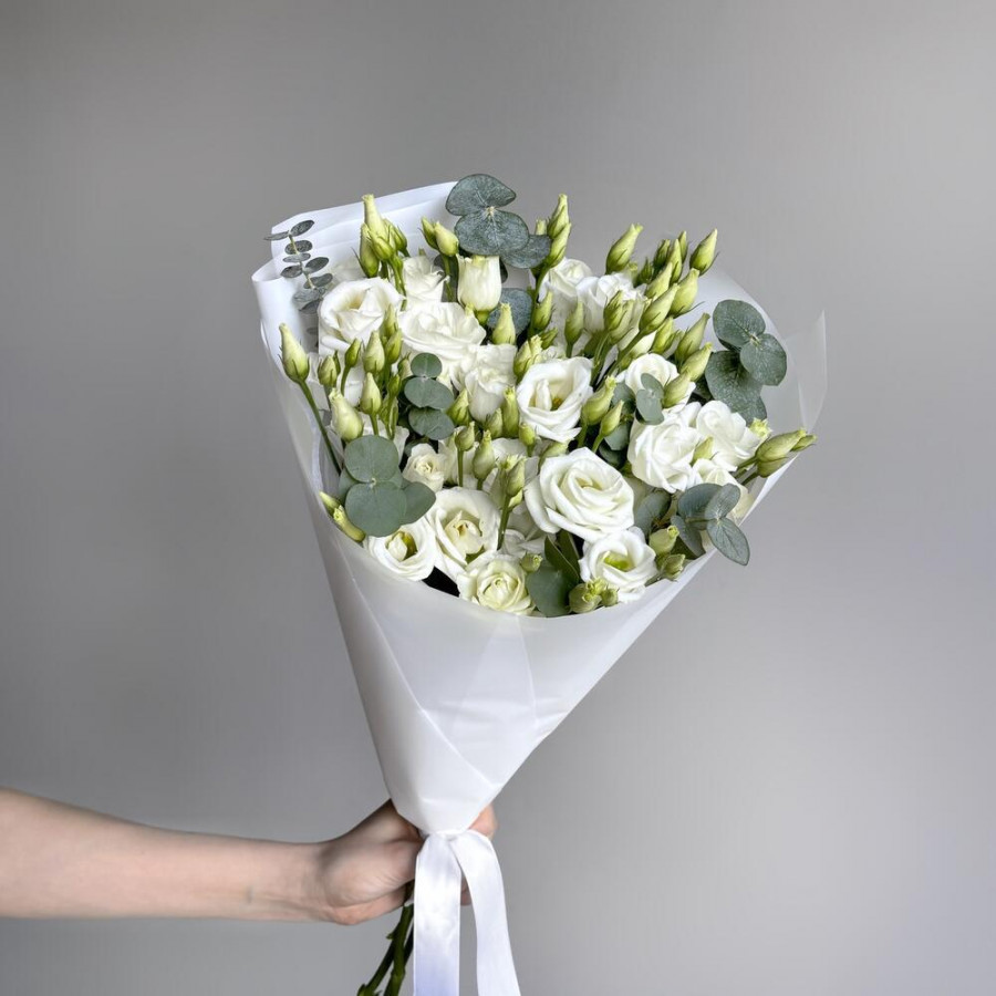 Букет из 7 белых эустом и эвкалипта в Солнечногорске