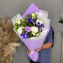 Букет из синих ирисов и белой эустомы