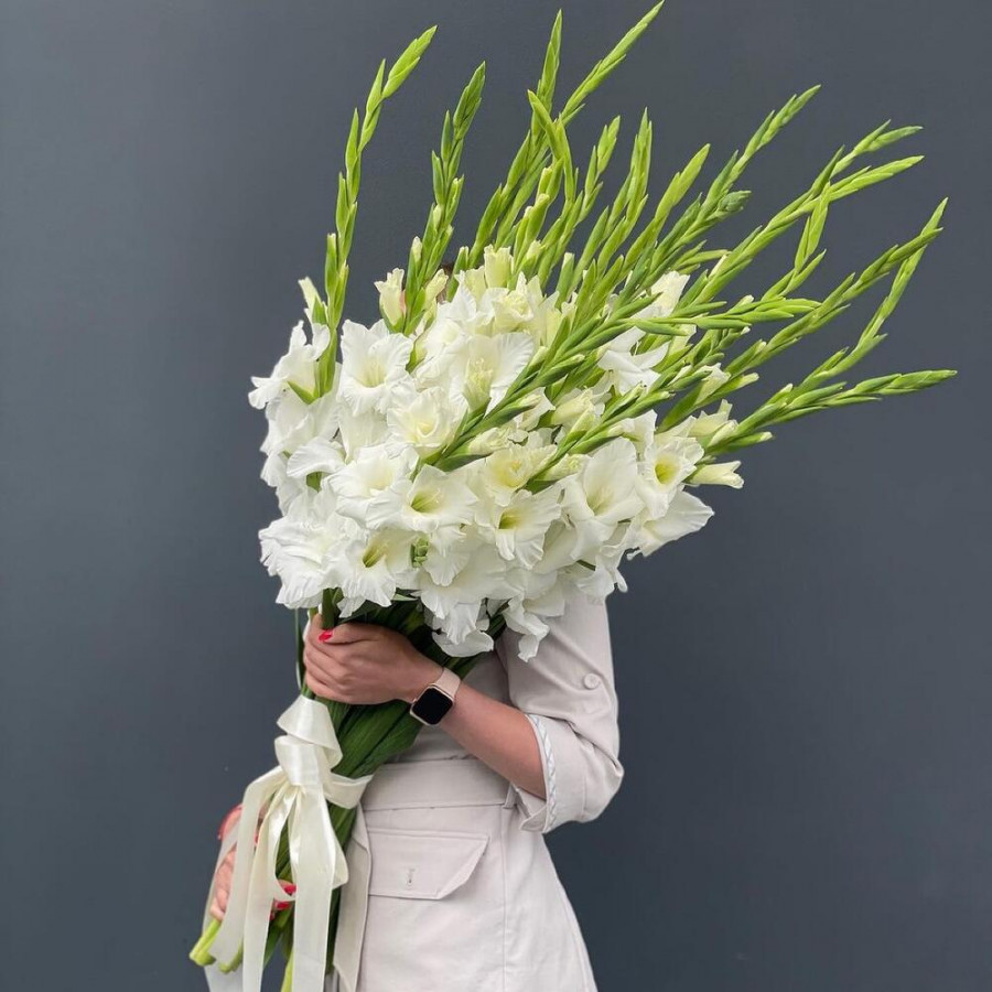 Букет из 19 белых гладиолусов под ленту в Солнечногорске