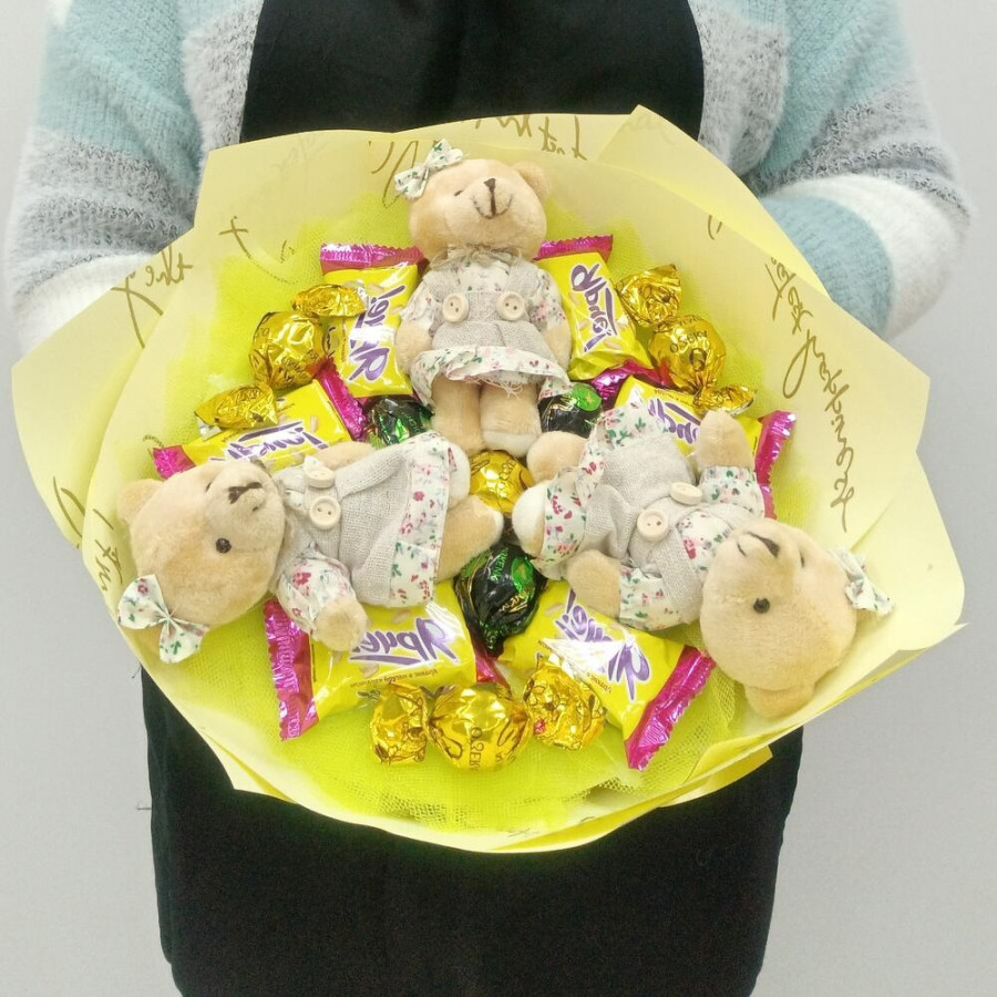 Букет из игрушек медвежат и конфет в Солнечногорске