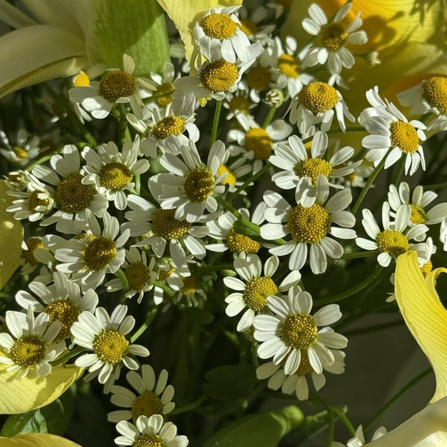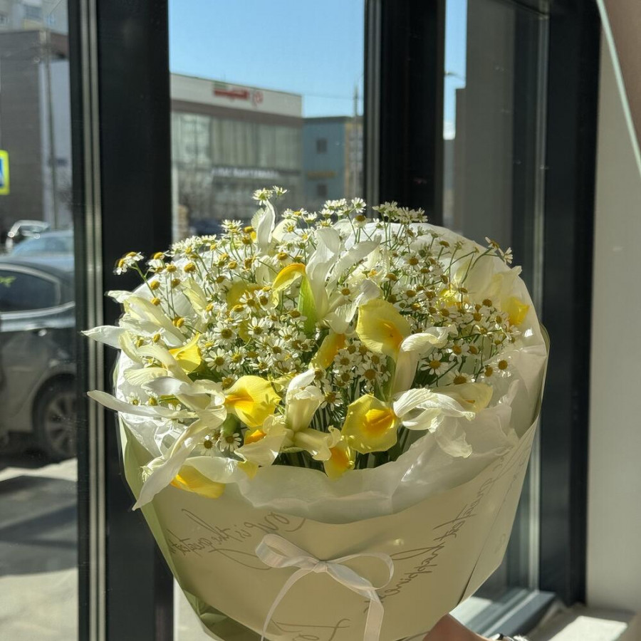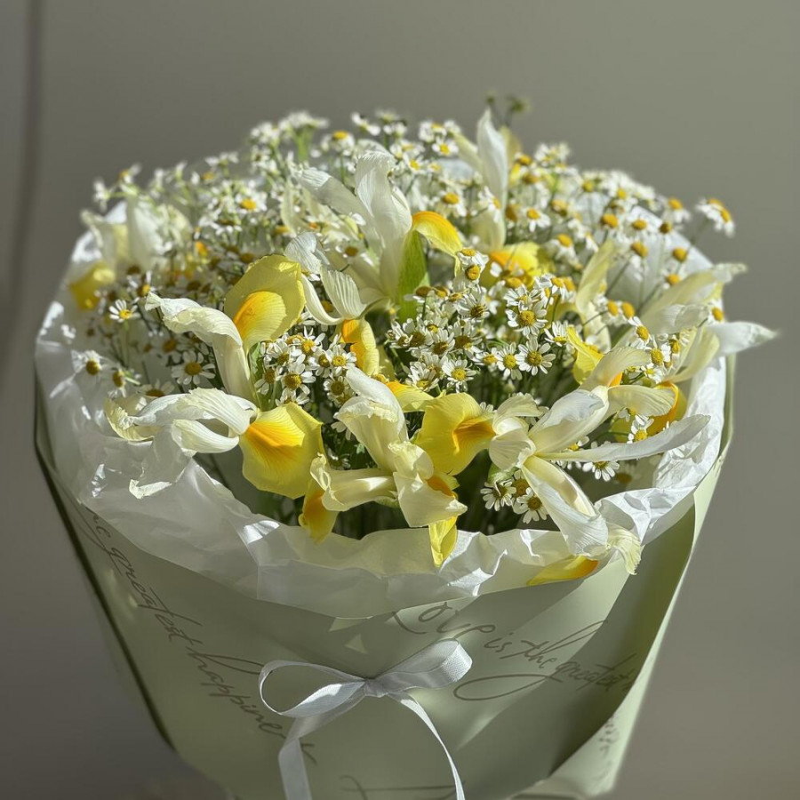 Букет из желтых ирисов и ромашек в Солнечногорске