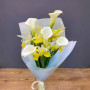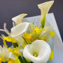 Букет из желтых ирисов и беллых калл в Солнечногорске
