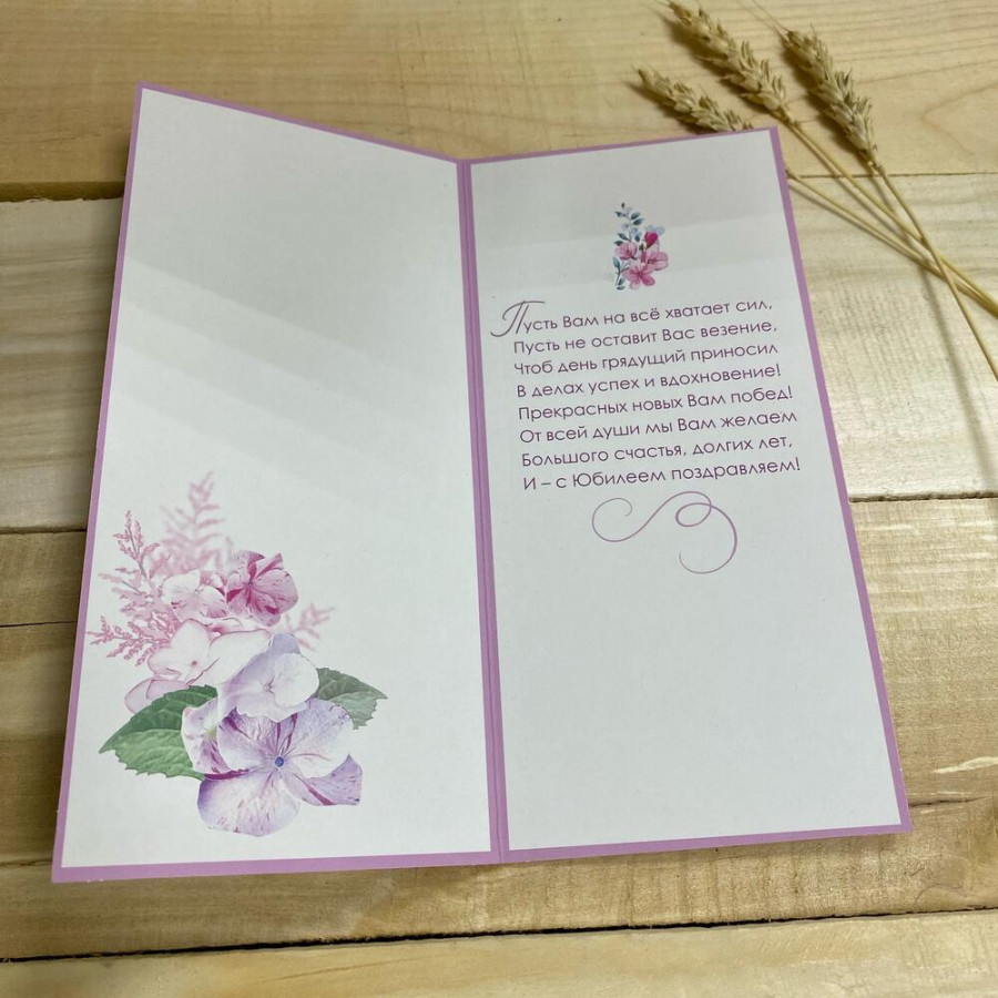 На фото открытка «с юбилеем». В составе: . Все цветы свежие и ароматные, букет красиво оформлен и отлично подходит для подарка. Доступна доставка цветов или самовывоз.